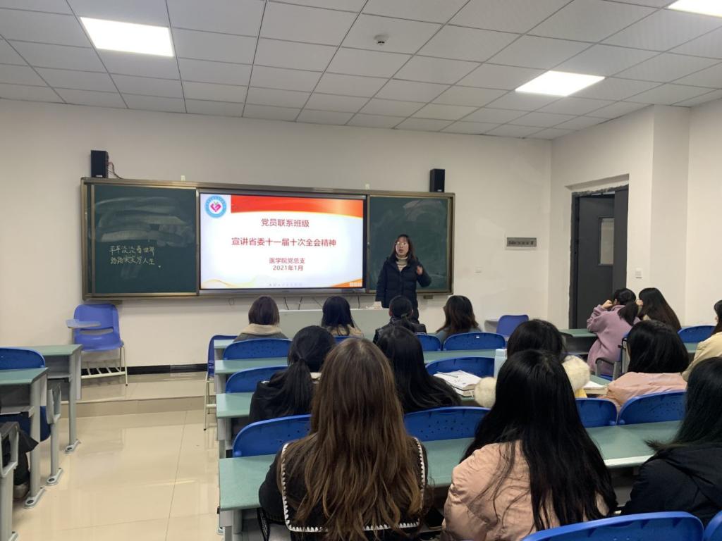 为全面深入领会贯彻省委十一届十次全会和广安市第六次党代会精神,引导广大师生统一思想、提高认识、振奋精神,医学院党总支开展开展“解放思想 开拓奋进”——党员进班级宣讲省委十一届十次全会和广安市第六次党代会会议精神活动。