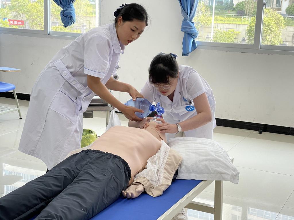 本次职业大赛由广安职业技术学院工会主办,医学院工会承办,大赛主要设置护理专业知识竞赛和双人心肺复苏竞赛项目。比赛过程中,各参赛老师与学生认真配合,积极投入,充分发挥扎实的专业知识和娴熟技能,在紧张而激烈的气氛中切磋技艺、展现才华,顺利完成比赛项目。裁判们本着认真负责、公平、公正、实事求是的原则,严格根据评分标准对选手的实际操作进行综合评分。经过激烈角逐,最终评选出一等奖一组,二等奖二组,三等奖三组,优秀奖7组。教师俞惠婷与学生陈秋妤经过激烈角逐,最终拔得头筹,获得本次大赛一等奖。
