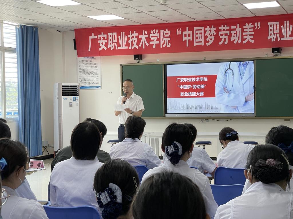 为庆祝第111个国际护士节,弘扬“工匠精神”“劳模精神”。根据学校“中国梦 劳动美”职业技能大赛要求,5月10日下午,医学院在奎阁校区明辉楼213实训室成功隆重举办“中国梦 劳动美”护理职业技能大赛,来自护理等6个教研室的21名老师与护理专业的21名学生组成比赛团队参赛。