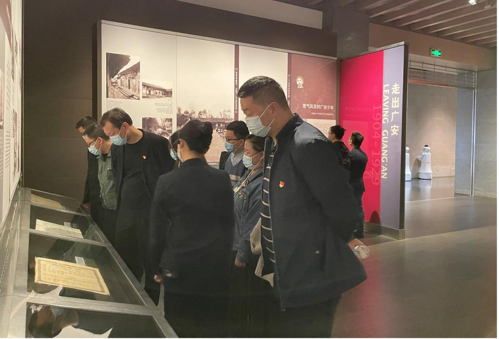 全体党员先后参观了邓小平铜像广场、邓小平故居陈列馆、邓小平故居缅怀馆、邓小平故居等场所。通过观看珍贵实物、图片和视频资料等,深切缅怀邓小平同志为中国革命、现代化建设和改革开放做出的丰功伟绩和历史奉献。在邓小平同志革命精神的感染下,全体党员在邓小平铜像广场重温了入党誓词。