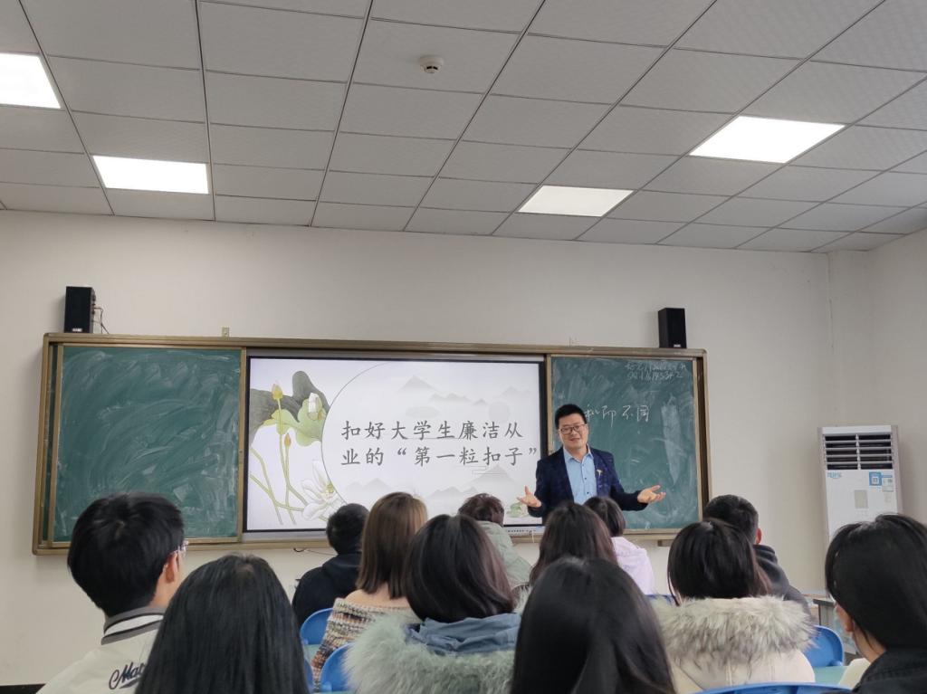 医学院党总支党员教师走进联系班级,以廉洁人物故事为案例,结合党总支统一制作的廉洁教育ppt给学生上了一堂生动的廉洁教育课,引导学生从本质上认识“廉洁”,从身边小事做起,扣好大学生廉洁从业的“第一粒扣子”。