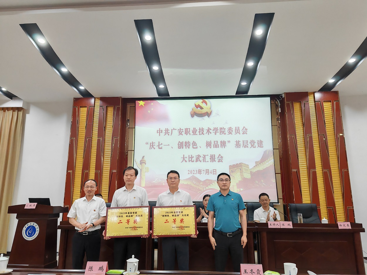 7月4日,学校组织开展了“庆七一、创特色、树品牌”基层党建大比武活动,通过现场观摩和集中汇报,考核8个二级学院党总支在标准化规范化建设、党建融合建设、特色品牌建设和党建成果方面的工作业绩。汇报会由党委副书记陈鹏主持,党委书记王冬霞出席并讲话,部分党委班子成员担任评委。