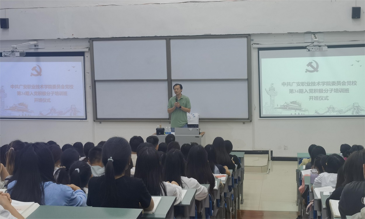 5月9日晚,中共广安职业技术学院委员会党校第34期入党积极分子培训班开班典礼在医学院举行。医学院党总支书记喻忠,智能制造与汽车工程学院党总支副书记张希,医学院党总支组织员汪建宏以及医学院151名入党积极分子培训学员参加了开班典礼,开班典礼由汪建宏主持。