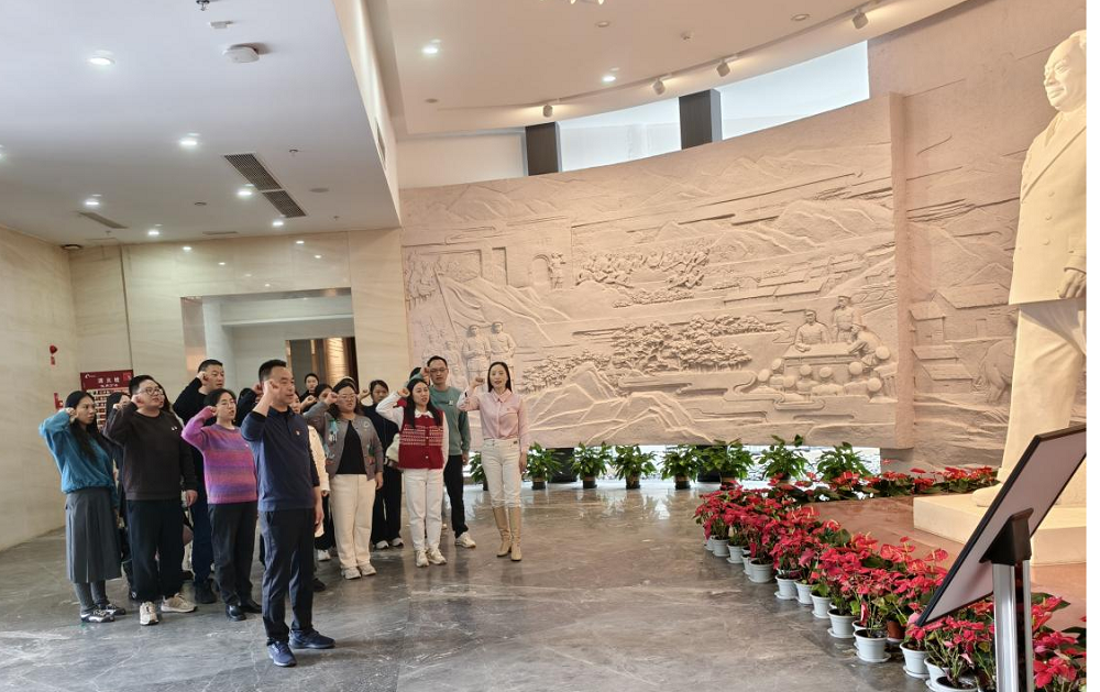活动期间,全体党员首先参观了陈毅纪念馆,大家跟随讲解员的细致讲解,通过观看丰富的文物、史料和图片,系统学习了陈毅元帅在土地革命战争、抗日战争、解放战争以及社会主义建设时期的辉煌历程与重大贡献,深刻感悟其坚定的共产主义信仰、深厚的家国情怀以及艰苦奋斗、严于律己的优良作风。随后,在陈毅故居现场,党总支组织了一堂题为“诗书敦上古,忠孝则前修”的微党课。党课重点研读了陈毅元帅《示丹淮,并告昊苏、小鲁、小珊》诗作,通过“汝是党之子,革命是吾风”等铿锵诗句,深刻阐释了陈毅元帅忠于理想、严于律己、勤于学习的革命家风与崇高品格。这堂生动的现场教学,使全体党员对革命前辈的精神世界有了更真切的体悟。在陈毅元帅塑像前,全体党员整齐列队,庄严举起右拳,重温入党誓词。“我志愿加入中国共产党……”铿锵有力的誓言回荡在现场,表达了大家为党的事业奋斗终生的坚定信念和不忘初心、牢记使命的坚强决心。