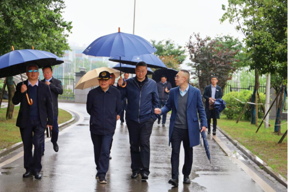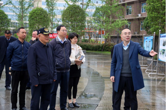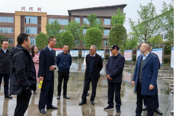 院长罗刚向田继万一行详细介绍了学院的发展现状、合作模式、办学规模、师资队伍、师生成果、发展规划等。田继万对医学院的创新的校企合作办学模式和取得的办学成果兴趣十分浓厚,指着展板上的荣誉证书仔细查看详细信息。随后调研组在院校领导的陪同下参观了运动场、学生宿舍等区域。