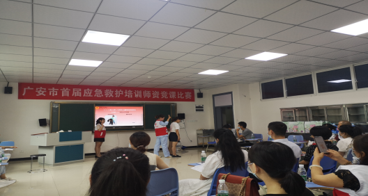 为进一步普及应急救护知识,大力弘扬“人道、博爱、奉献”的红十字精神,提高教师急救教学能力。6月17日,广安市首届应急救护培训师资竞课比赛在广职院医学院隆重举行。