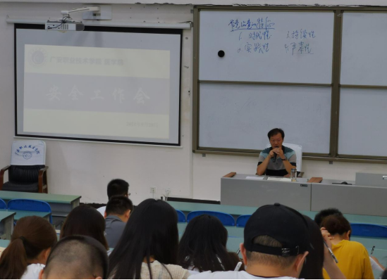 临近国庆假期,为了贯彻落实近期华泰集团帅晓东总经理、经开区公安局及消防大队视察医学院安全工作的指示,切实做好学院假前安全管理工作,保证师生生命财产安全,有效维护校园和谐稳定。9月28日下午,医学院在明辉楼阶1-1召开了节前安全专题工作会议。全院教职员工及全体班导师按时参会,会议由党总支书记喻忠主持。