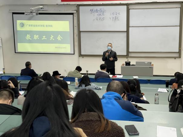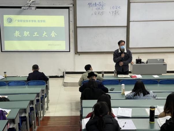 11月9日下午,医学院在明辉楼阶1-1召开了全体教职工大会,全体教职工及后勤、安保、食堂负责人参加会议,医学院院长罗刚主持会议。
