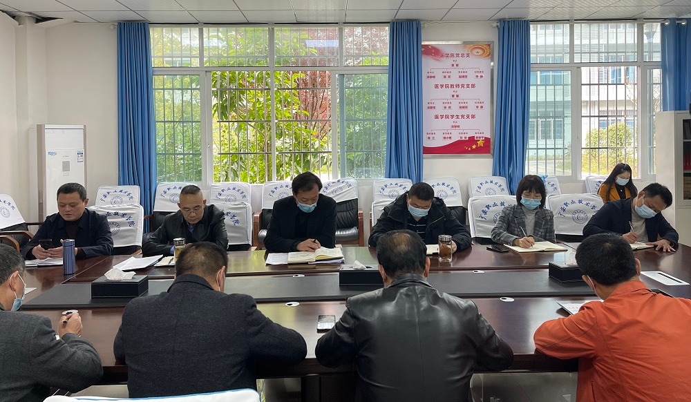 2月13日下午,医学院在明辉楼118召开了春季学期疫情防控及开学工作会议,医学院院领导及各部门负责人参加会议,医学院党总支书记喻忠主持会议。