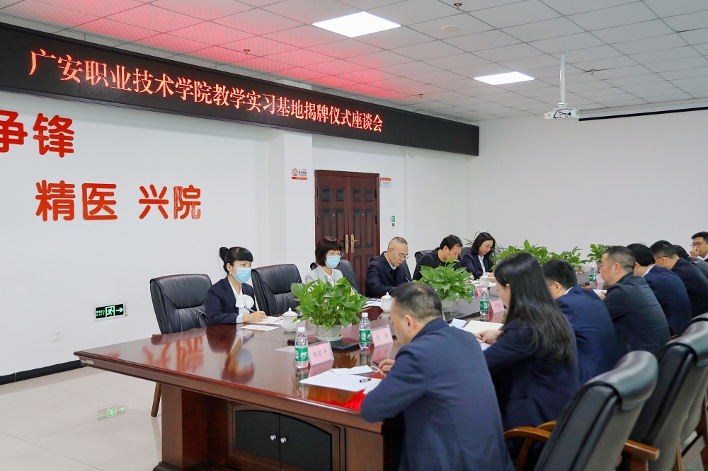 揭牌仪式前,双方召开了座谈会。医学院院长罗刚对前锋区人民医院的大力支持表示衷心感谢!同时对医学院办学模式、师资力量、专业建设、人才培养模式等方面做了详细的介绍。他希望通过本次合作,校院双方共同培养高水平的医务人员,实现校院深度合作,产教融合。