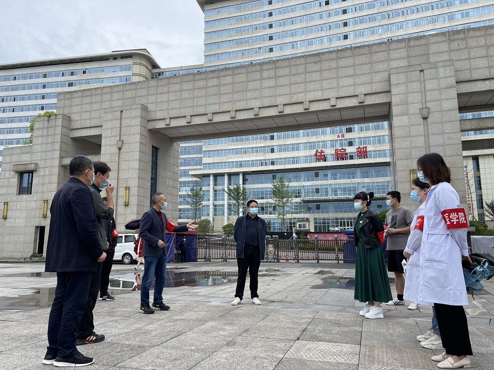 2022年5月15日,奎阁校区疫情防控指挥部指挥长、学校党委委员、副校长邓廷奎带领留校值守人员检查督导奎阁校区疫情防控工作。明辉教育咨询管理有限公司总经理陈志德、医学院院长罗刚、党总支书记喻忠陪同督查。