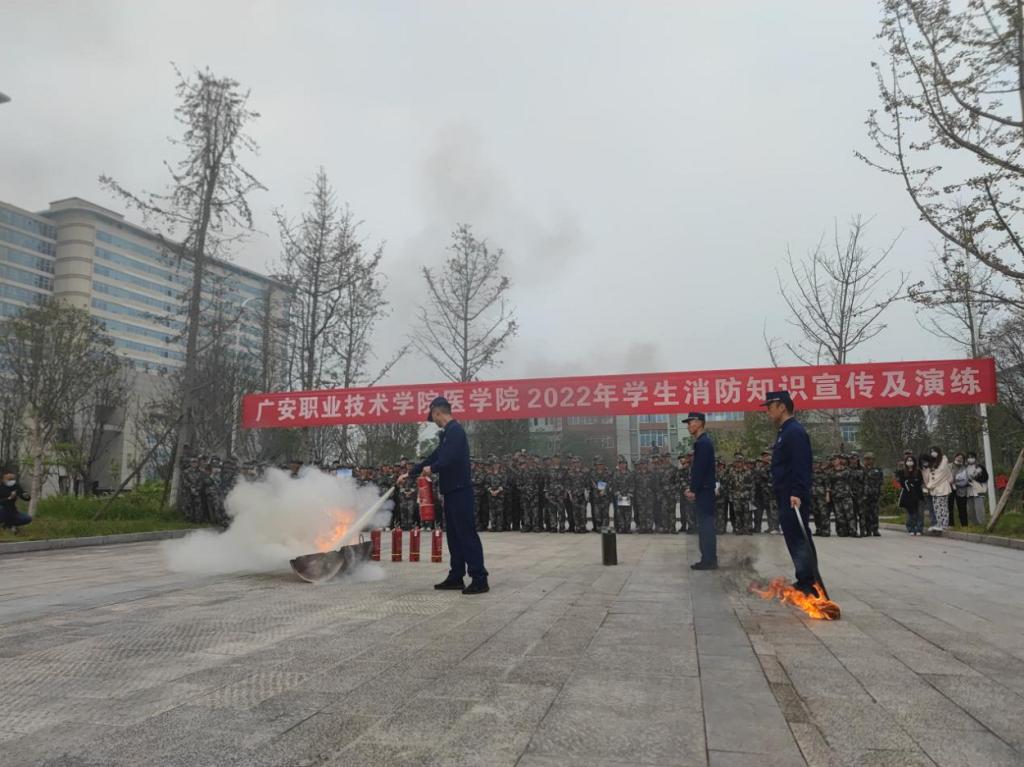 在第31个“11.9”全国消防日到来之际,为进一步增强大学生消防安全意识,了解消防安全知识,提高应急处置和自救自护能力,营造平安、稳定、和谐的校园环境。11月11日上午,医学院邀请了广安市经开区消防救援大队开展了2022年学生消防知识宣传及演练活动,党总支书记喻忠,副书记吴黎明,医学院安保部、学工部全体工作人员及2022级全体新生参加了宣传活动。