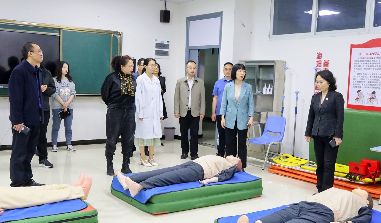 袁波一行现场查看了医学院应急救护培训基地文化建设、设施设备采购情况并听取了该院应急救护员培训情况,袁波一行对该院应急救护培训项目的建设和工作开展给予了充分肯定。