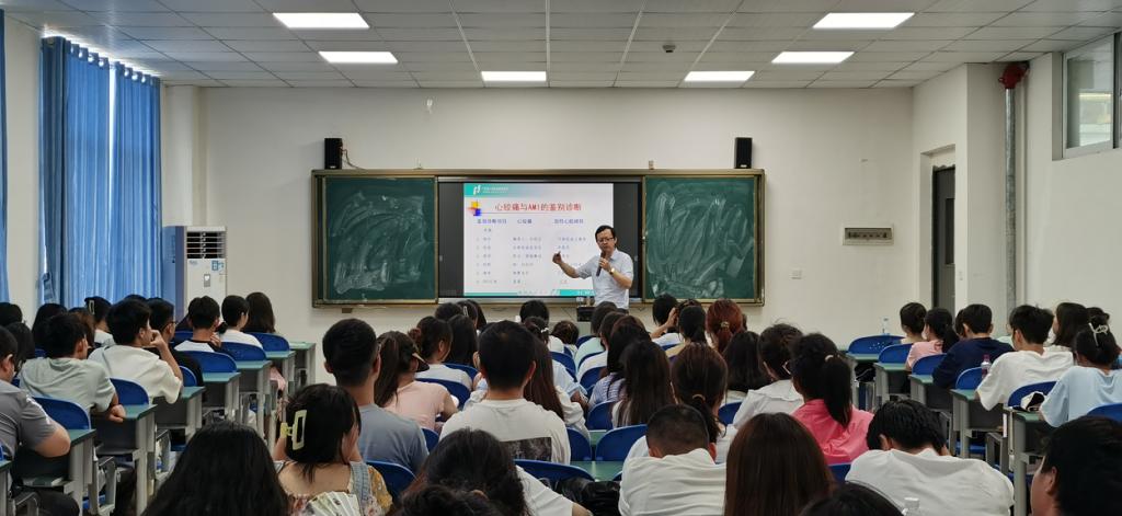 2023年5月29日下午,医学院特邀四川大学华西广安医院院长助理、前锋区人民医院党委书记庹田教授,在崇贤楼106开展“急性心肌梗死”的专题讲座。医学院党总支书记喻忠、副院长罗巧及100余名师生共同聆听了此次讲座。