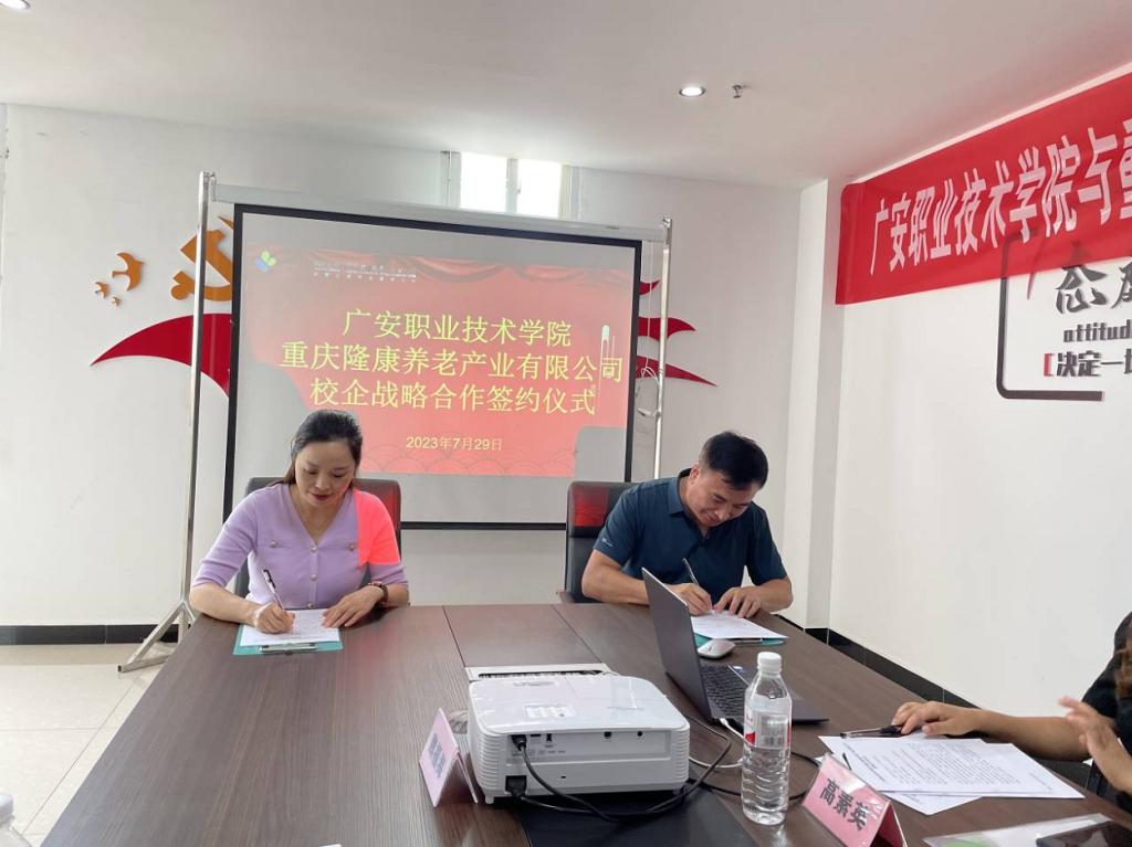 梁伦亮代表武隆区民政局讲话,他表示目前武隆区养老专业技术人员较为短缺,希望针对养老精准施策,健全智慧养老服务体系。他期待实现“政行校企”共同育人,同时借助高校人才智慧、研究成果转化,积极应对区县人口老龄化问题。