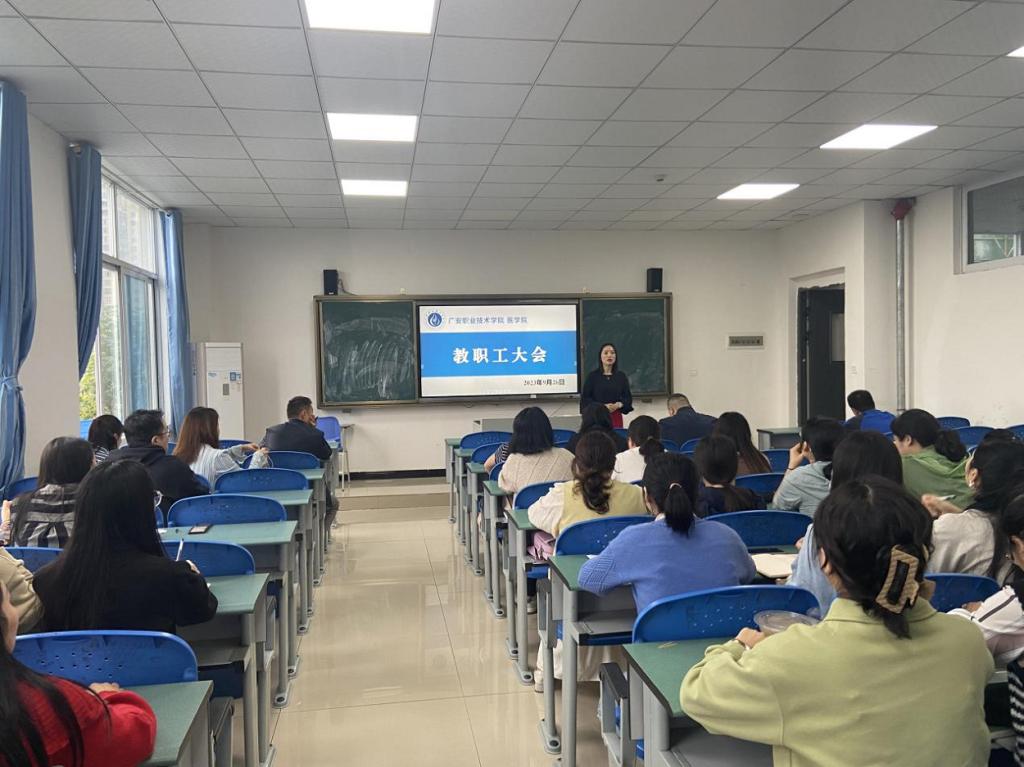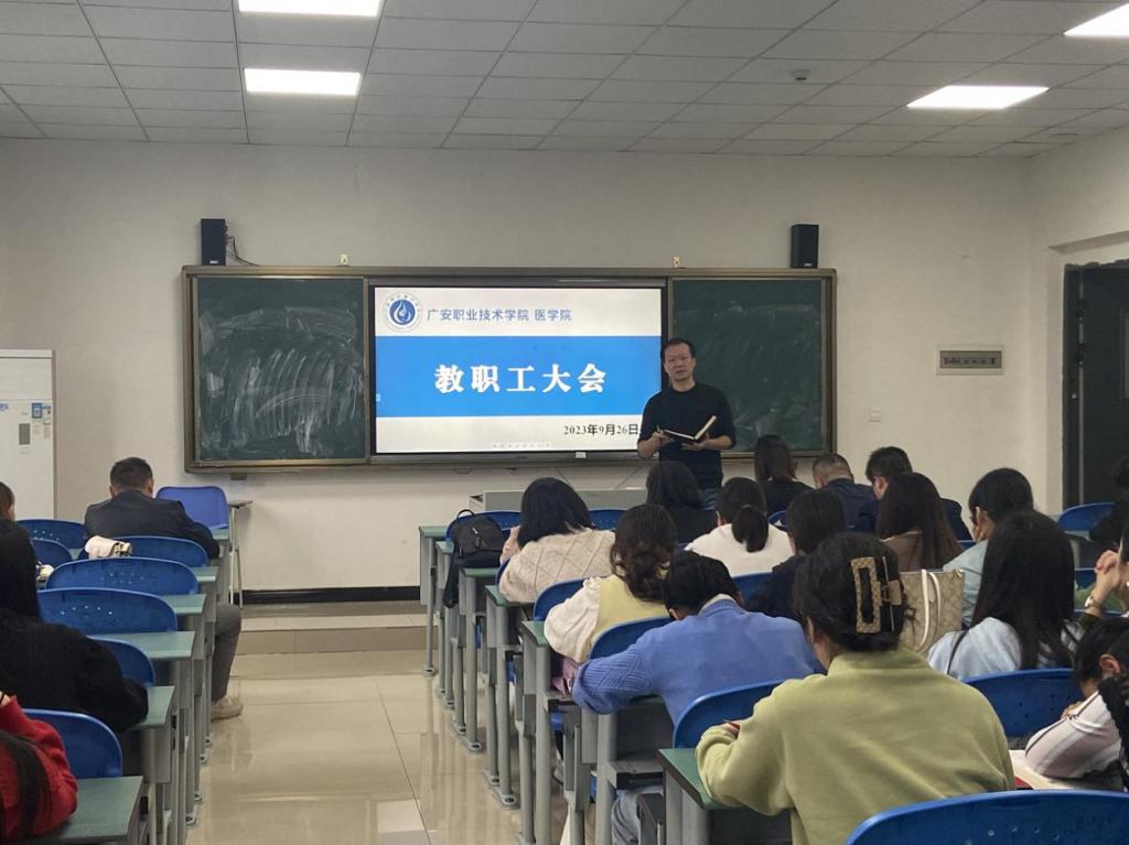 9月26日下午,医学院在崇贤楼B1-06室召开节前教职工大会,全体教职工参加会议,医学院院长杨书琴主持会议。