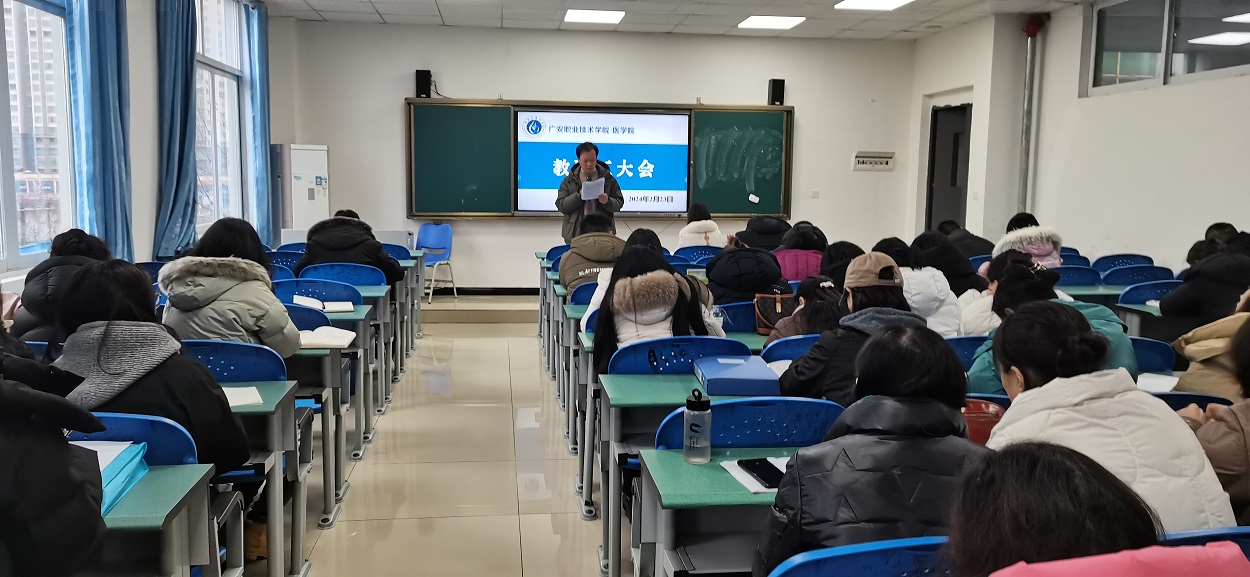 会上,杨书琴对2023年工作进行了总结,同时对新学期的工作作出展望。希望全院师生“在埋头拉车的同时,也要抬头看路”,锚定蓝图谋发展,鼓足干劲谱新篇。杨书琴指出,2024年是学院发展突破年,全体教职工要立足岗位,履职尽责,深刻牢记职业教育使命,落实立德树人根本任务,培养高素质人才;要不断增强忧患意识,不断学习提升,强化科研能力;要持续抓好“双高”任务建设、招生就业、产教融合、师生技能大赛、社会服务等工作,全面提高人才培养水平。杨书琴表示,全体教职工应将知重负重、知难克难、知责担责,坚定信心,砥砺前行,共同推动医学院跃上新平台,实现新发展。