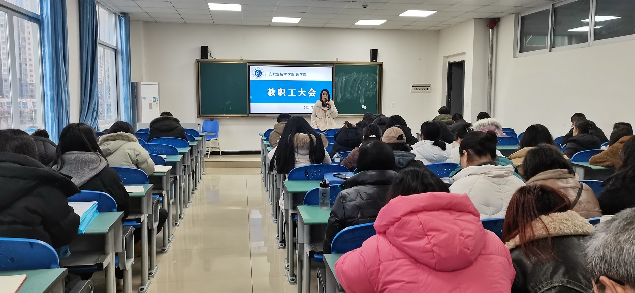 会上,医学院党总支书记喻忠传达学习了学校中心组会议精神,组织全体教职工深入学习了习近平总书记在中共中央政治局第十一次集体学习时的重要讲话精神,传达了《四川省教育厅关于做好2024年春季开学安全工作的通知》文件精神,并希望全体教职工做好新学期开学准备工作。喻忠对学院各项工作进行了安排和部署,同时对全体教职工提出了工作要求:纪律规矩务必遵守,抓严师德师风与工作作风,确保风清气正;认真剖析2023年工作中不足,抓牢新学期工作的谋划与安排,不断推动学院各项事业的发展。
