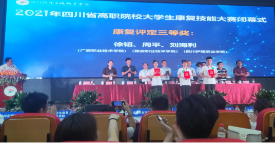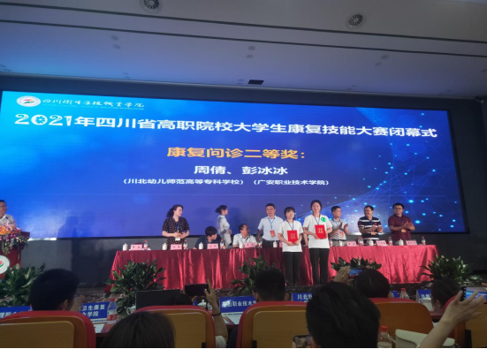 近日,2021年四川省高职院校大学生康复技能大赛在自贡拉开帷幕,来自全省12所高职院校48名选手参加此次比赛,我院派出1名替补,3名学生参赛。经过严格激烈角逐,我院康复治疗技术专业学生彭冰冰、徐韬凭借扎实的基础理论知识、规范标准的技能操作、灵活应变的思维能力在众多选手中脱颖而出,最终斩获四川省高职院校大学生康复技能赛项1个二等奖,2个三等奖,1个团体三等奖。
