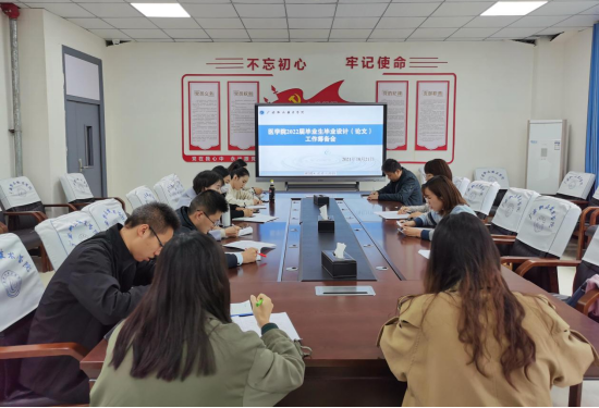 毕业设计(论文)是对学生进行综合训练的重要实践教学环节,是检验教学质量和教学水平的重要指标。为做好2022届毕业设计(论文)工作,10月21日上午,医学院在明辉楼A118室召开2022届毕业生毕业设计(论文)工作筹备会,医学院副院长罗巧,教学科研部、各教研室主任和专业负责人参会。