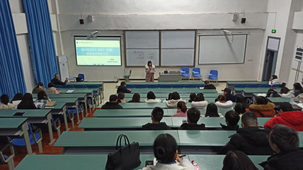 2021-2022-1学期期末考试即将开始,为了保证期末考试工作的顺利进行,12月21日下午,医学院在明辉楼A阶1-1室组织召开了期末考务工作会。医学院院长罗刚,党总支副书记吴黎明,副院长罗巧及全体教职员工参加了会议。