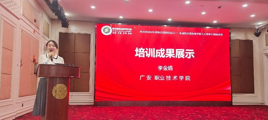培训期间,李金娟老师代表广安职业技术学院参赛团队登台分享学习体会,其分享内容结合省赛实践与培训感悟,逻辑清晰、见解深刻,获得与会专家与同行的高度认可;同时,李金娟老师因学习态度端正、成效突出,被授予“优秀学员”称号。此外,专家团队还针对三位老师此前的省赛参赛作品,从内容优化、呈现形式创新等方面提供精准化指导,助力其突破教学与备赛难点。