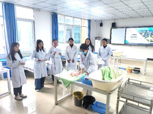 本次模拟赛对标省赛规程,设置了“气道护理”与“婴儿沐浴”两个赛项,检验了参赛学生的技能操作水平和临场应变能力。比赛在明辉楼A314和A214两个赛场同步进行,由江艳、段卓、赵丹、陈浪萍、叶春梅、李曾珍等老师组成的评委组严格执评。赛后,评委团队进行了精准复盘与指导,为下一阶段的备赛训练指明了方向。