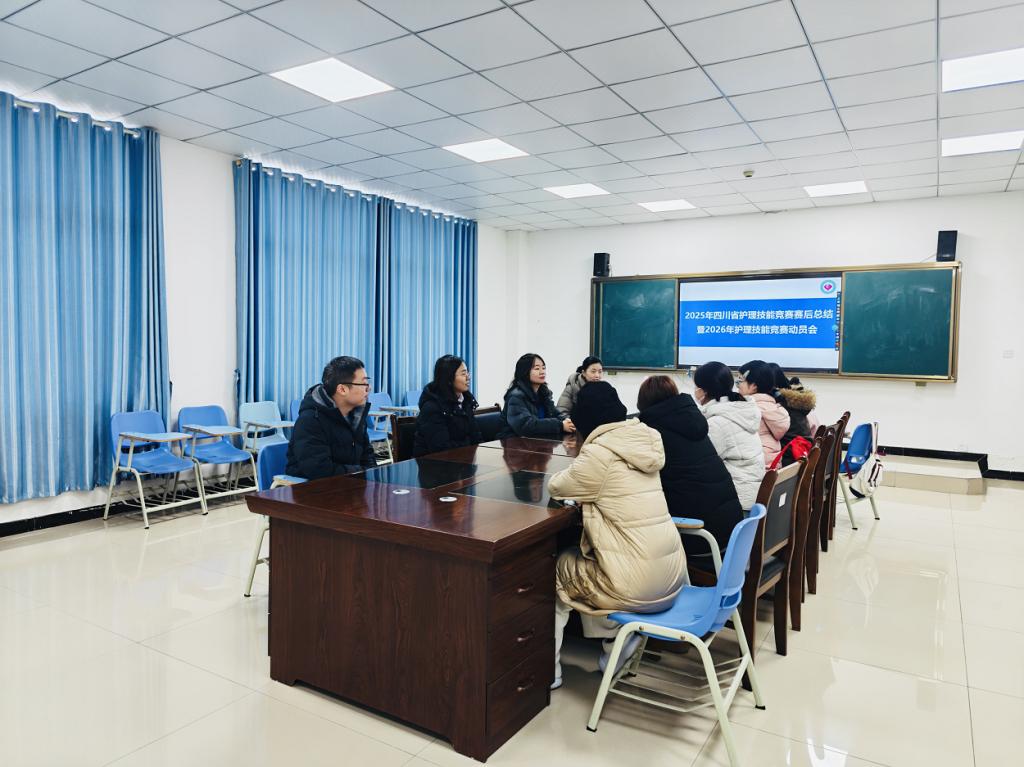 1月15日,护理专业在崇贤楼502教室召开四川省职业院校技能大赛康复治疗与护理赛道护理组赛后总结会。指导教师团队成员、四位参赛选手及其他学生代表共同参会。