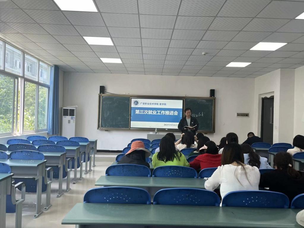 为深入推进我院2023届毕业生就业工作,促进毕业生更充分更高质量就业。5月11日中午,医学院在崇贤楼109教室组织召开2023届毕业生就业工作第三次推进会议,医学院副院长贺洪军、招生就业办公室主任赵婧羽、干事龚春平及全体毕业班班导师参加会议,会议由医学院党总支书记喻忠主持。