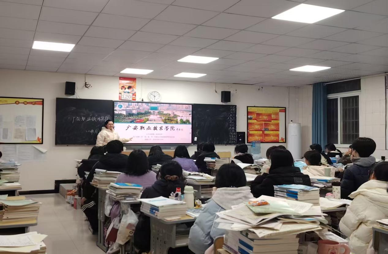 在面向学弟学妹的宣讲中,成员们围绕成长分享、高考助力、广职宣传三大核心,结合自身备考经历、大学成长故事,分享高考冲刺技巧与志愿填报经验,普及生涯规划知识。同时,通过播放学校统一宣讲视频,详细介绍广安职业技术学院的办学概况、育人环境、专业设置及就业前景,重点讲解医学院相关专业特色与发展优势,全方位展示广职风采。