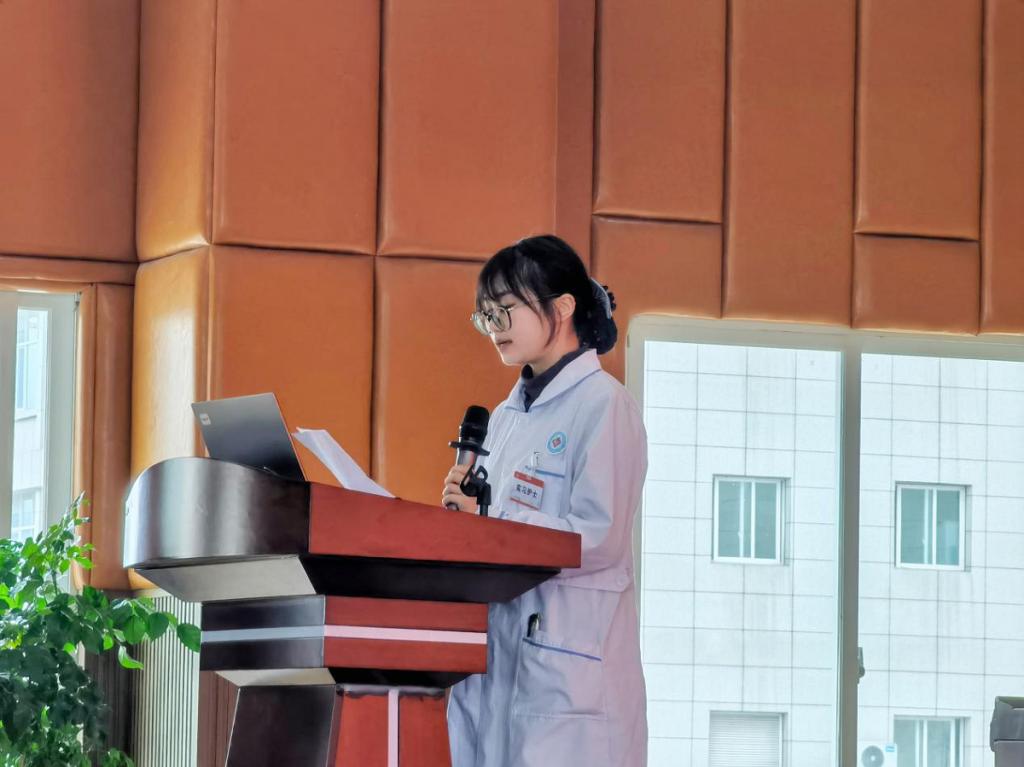实习生代表董媛媛发言表示,感谢前锋区人民医院为我们提供了舒适的实习环境;感谢各位老师们对我们的悉心指导,让我们学到了许多课本上没有的知识;也十分感谢学院的教育培养,使我们变得更加的优秀。