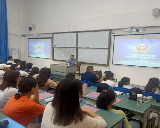 仪式上,杨伟洪所长向在场的志愿者讲解了诈骗心理、诈骗手法、诈骗案例,让在场的志愿者意识到电信诈骗带来的危害,意识到防范电信诈骗刻不容缓。