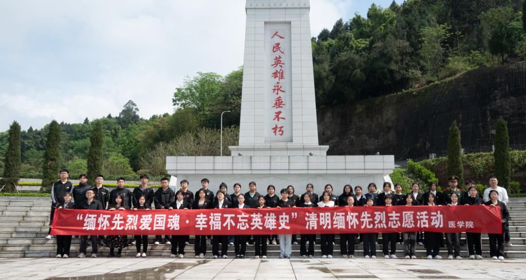 在清明节即将到来之际,为继承革命先烈遗志,弘扬民族精神,加强学生爱国主义教育。4月2日下午,在医学院学工部全体工作人员的带领下,50余名师生志愿者到广安市凤凰山烈士陵园开展了“缅怀先烈爱国魂·幸福不忘英雄史”清明缅怀先烈志愿活动。