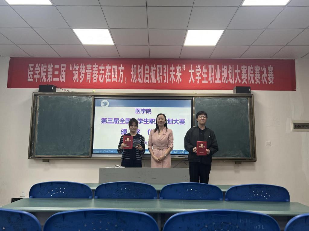 大赛前期经班级推荐、初赛材料评审与现场答辩,20名选手晋级成长赛道决赛,15名选手入围就业赛道。决赛设“主题陈述+现场问答”环节:成长赛道选手聚焦职业定位、目标拆解等展示,涵盖基层医疗调研与养老护理等创新设想;就业赛道选手结合专业特长,借模拟面试应答等展现综合素养。评委从规划科学性、可行性等维度评分,现场氛围热烈。历经近3小时角逐,25护理2班唐帅获成长赛道金奖,24康复治疗技术2班高婷婷摘就业赛道金奖,此外,24护理2班崔婷婷等4名同学获银奖,25护理3班董盼等6名同学获铜奖。