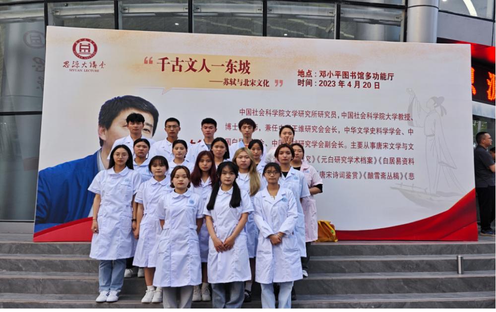 为进一步提高师生文学素养,深入了解中华传统文化,4月20日晚19点,医学院专职辅导员熊倩、邹洁带领18名学生在广安市邓小平图书馆多功能厅参加了广安市“思源大讲堂”专题讲座活动,本场专题讲座主题为“千古文人-东坡——苏轼与北宋文化”。讲座由中国社会科学院文学研究所研究员、中国社会科学院大学教授、博士生导师、中国苏轼研究学会副会长——陈才智教授主讲。
